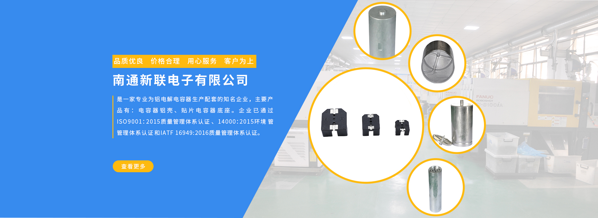 南通新聯電子有限公司是一家專業為鋁電解電容器生產配套的知名企業,主要產品有:電容器鋁殼、貼片電容器底座。企業已通過ISO99001:2015質量管理體系認證和14000:2015環(huán)境管理體系認證。企業... MORE